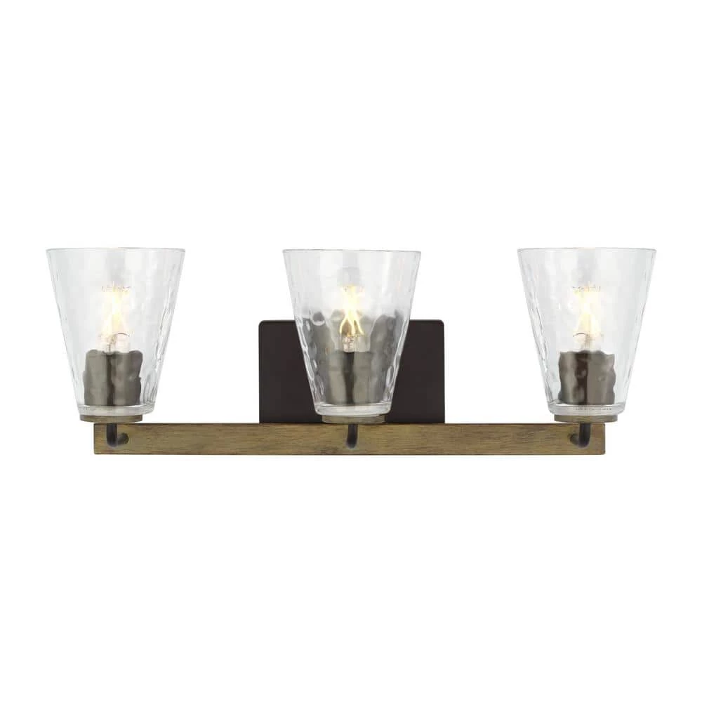 Westbrook 3-Light Weathered Oak Rustic Farmhouse Bathroom Vanity Light with Matte Black Accents by Home Decorators Collection