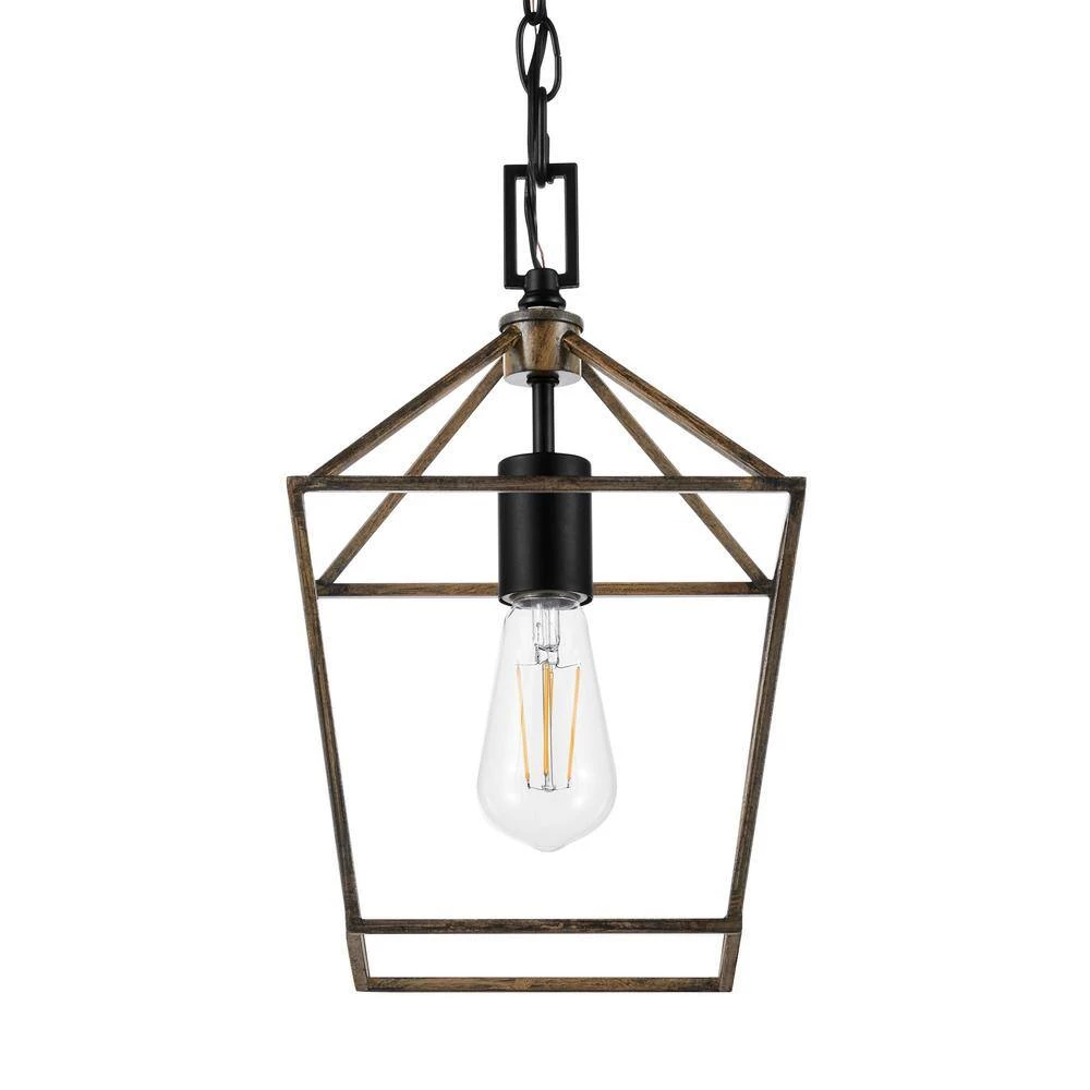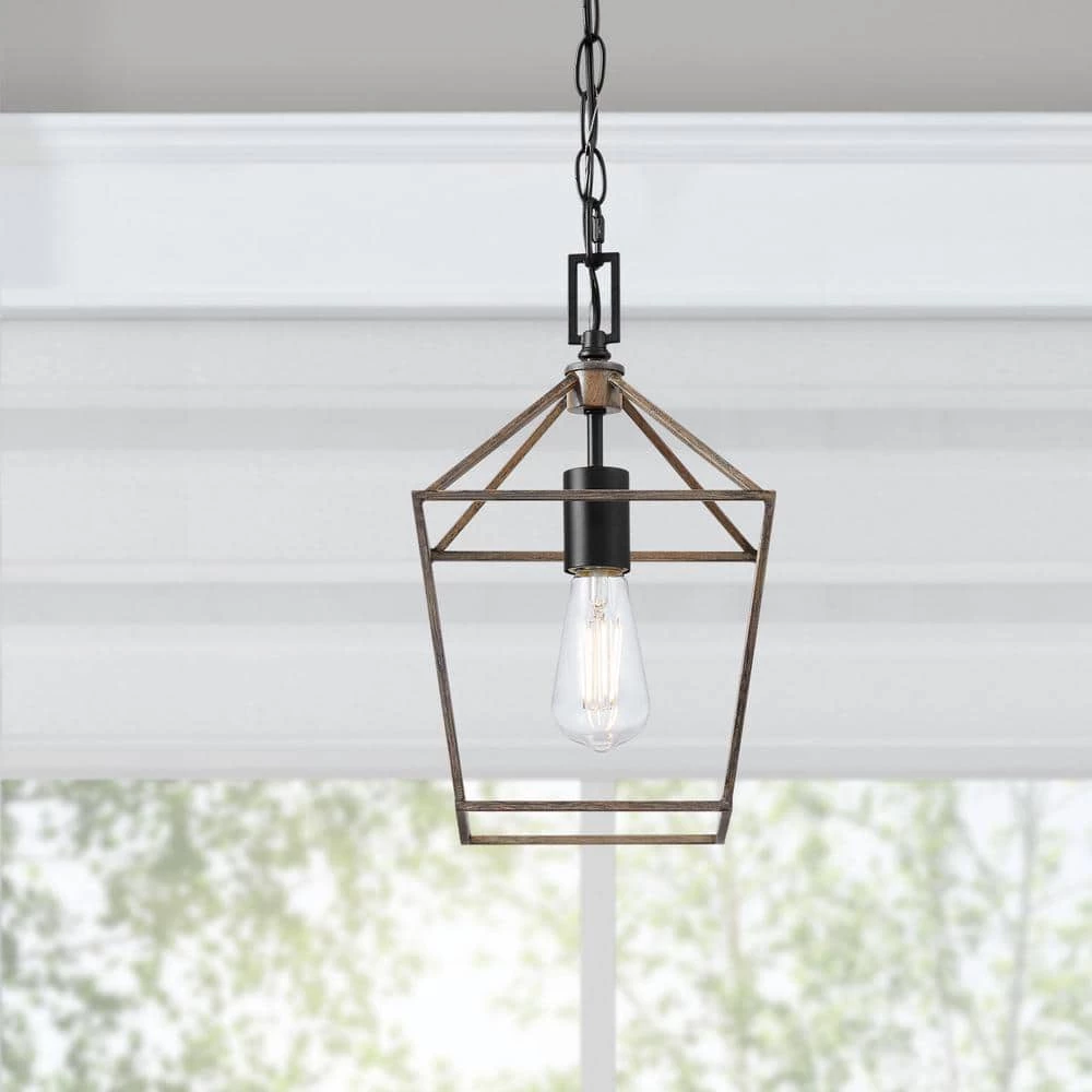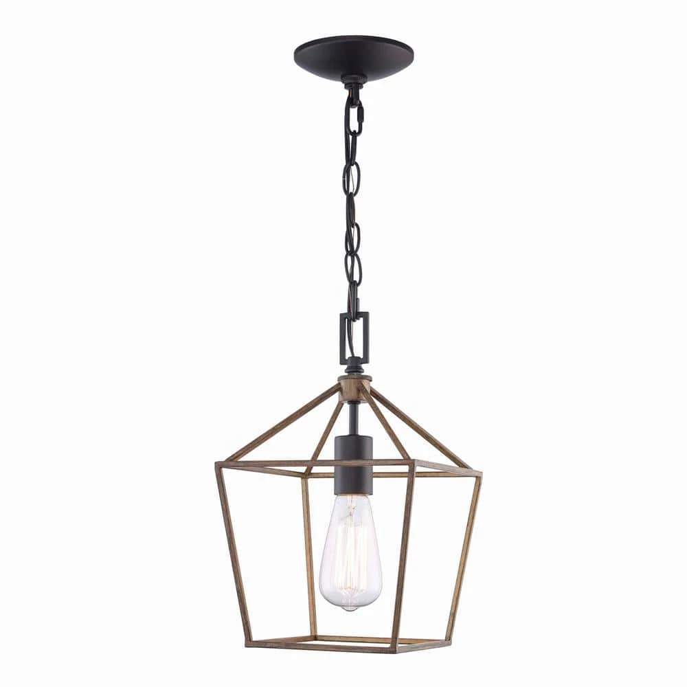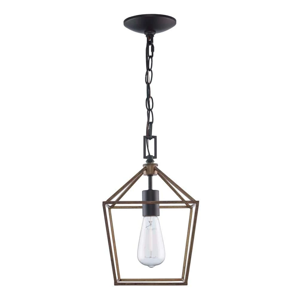 The Weyburn Collection exhibits farmhouse style indoor lighting with rustic, industrial appeal. Enhance your kitchen or dining room space with the classic styling of this single light mini pendant. Highlighted by a contemporary black finish and faux wood metal birdcage design, this fixture adds a warm glow to a variety of indoor applications. The open caged shade exposes the light bulb and a vintage style Edison bulb is recommended to capitalize on the industrial feel of the piece. This adjustable pendant is mounted with a matching round ceiling canopy and includes 5 ft. of chain for a customizable suspension height. This piece looks great when mounted as a single piece or when hung in multiples. Shop the Weyburn Collection for additional finish options and light counts.