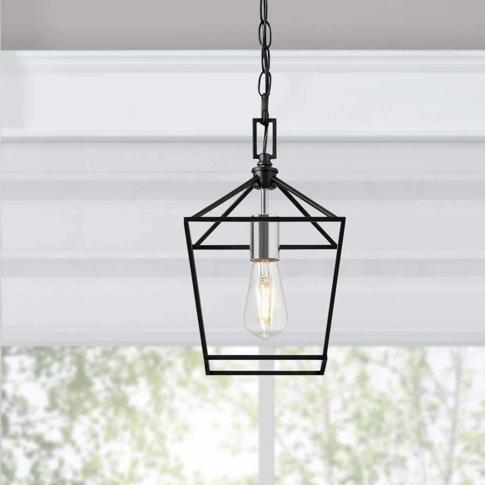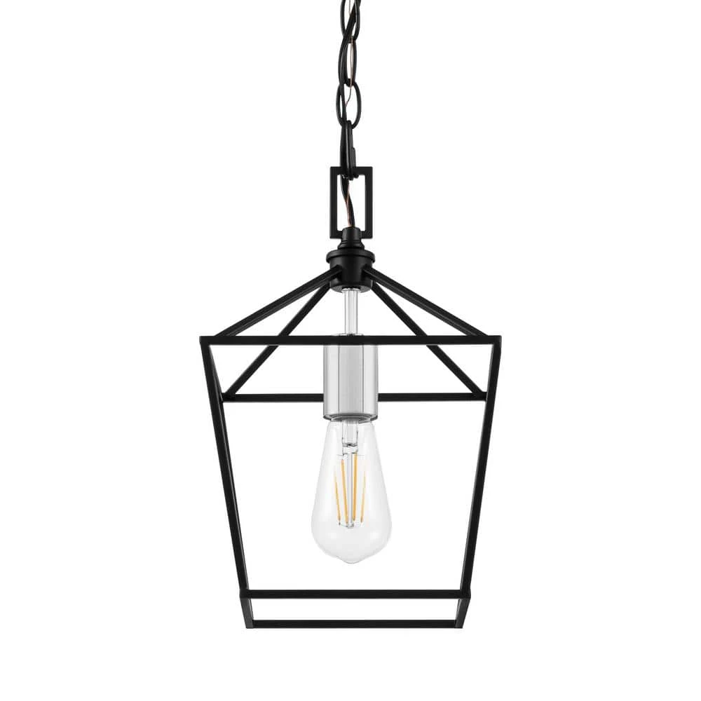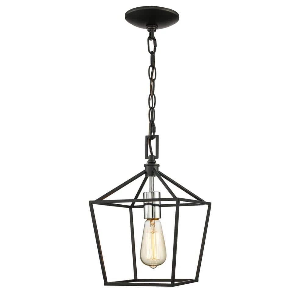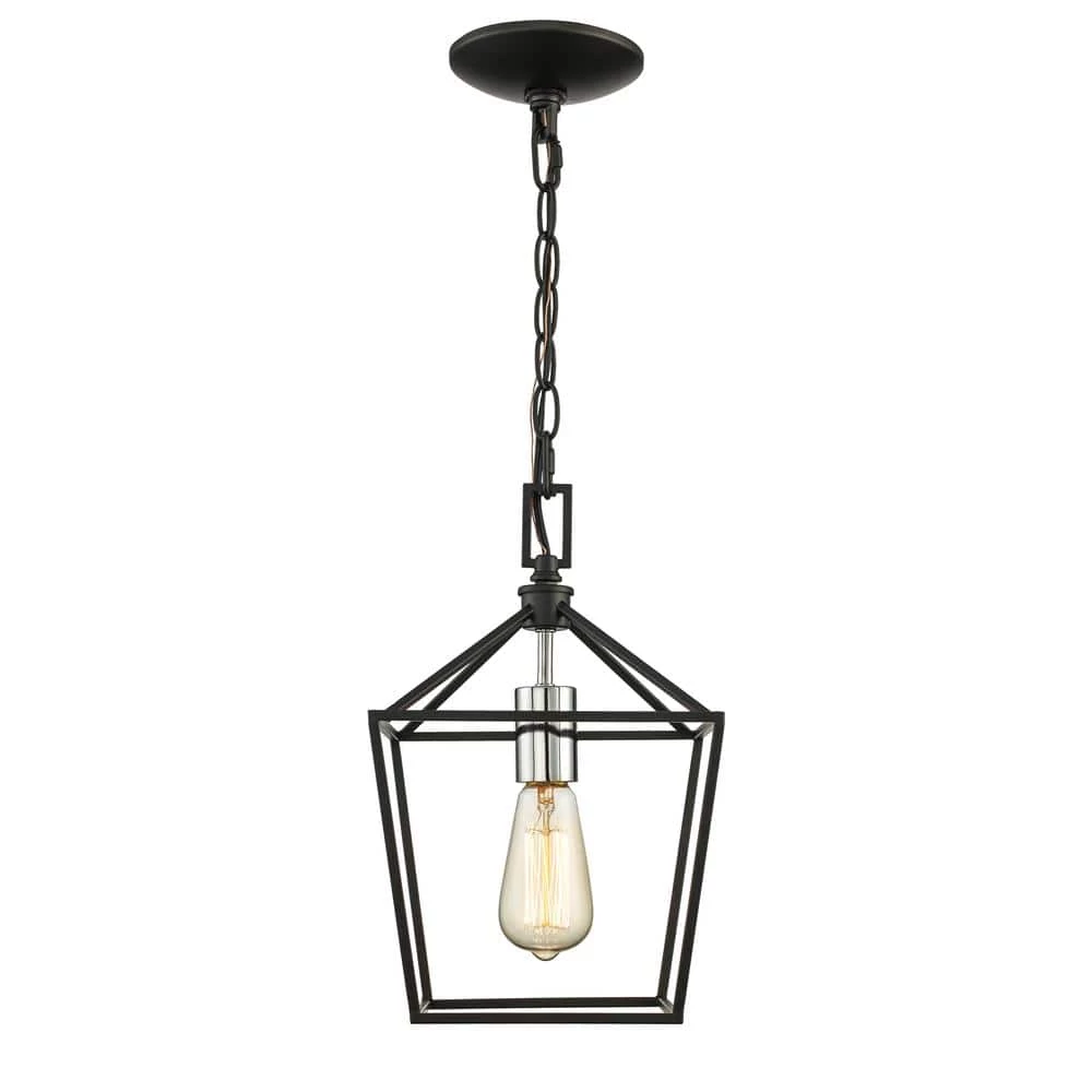 The Weyburn Collection exhibits farmhouse style indoor lighting with rustic, industrial appeal. Enhance your kitchen or dining room space with the classic styling of this single light mini pendant. Highlighted by a contemporary metal birdcage design and 2-toned black and chrome finish, this fixture adds a warm glow to a variety of indoor applications. The open caged shade exposes the light bulb and a vintage style Edison bulb is recommended to capitalize on the industrial feel of the piece. This adjustable pendant is mounted with a matching round ceiling canopy and includes 5 ft. of chain for a customizable suspension height. This piece looks great when mounted as a single piece or when hung in multiples. Shop the Weyburn Collection for additional finish options and light counts.