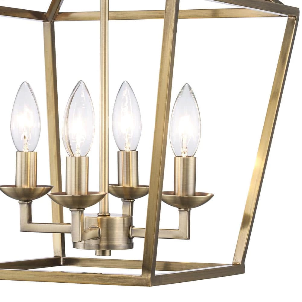 Weyburn 16.5 in. 4-Light Brushed Brass Lantern Farmhouse Semi-Flush Mount Ceiling Light Fixture by Home Decorators Collection