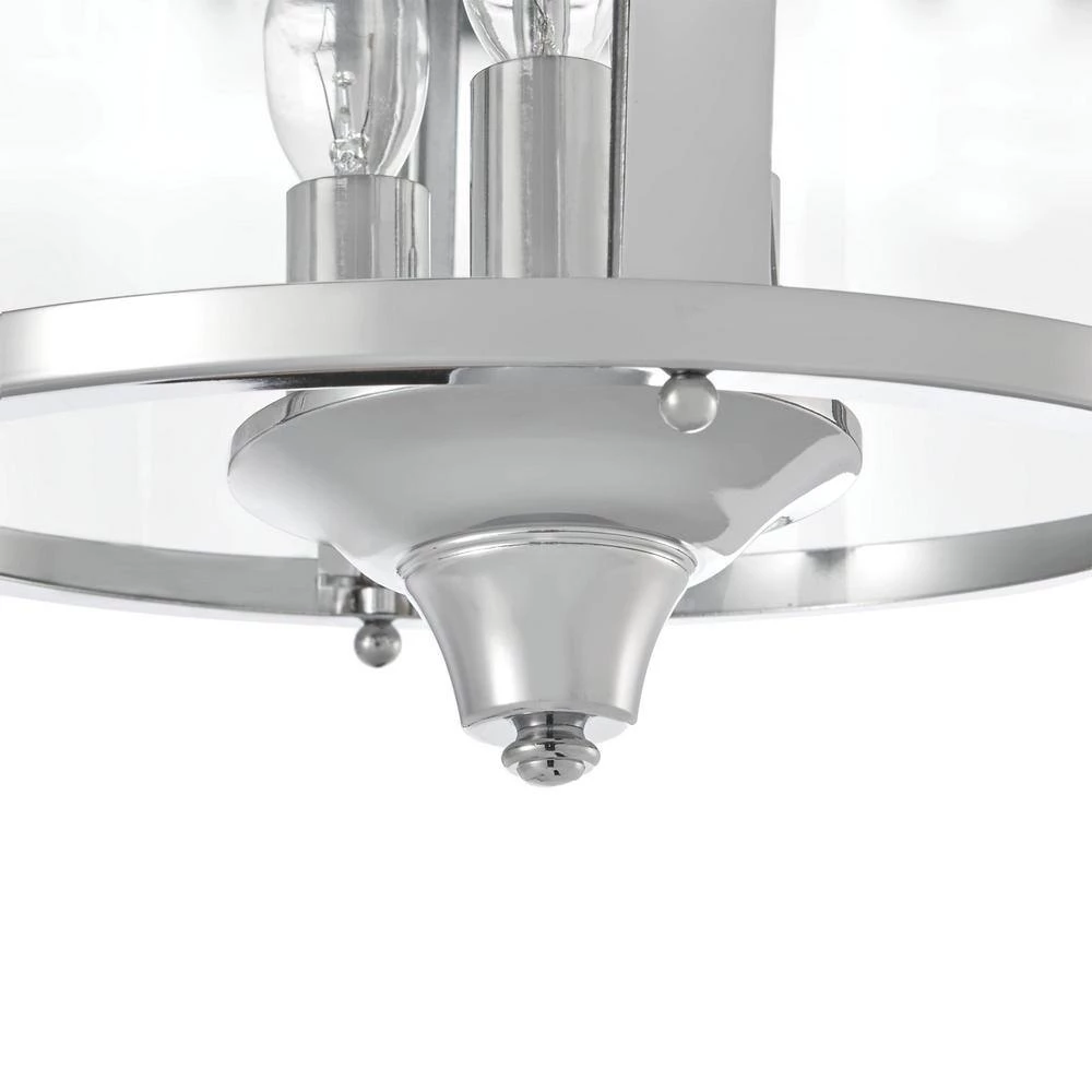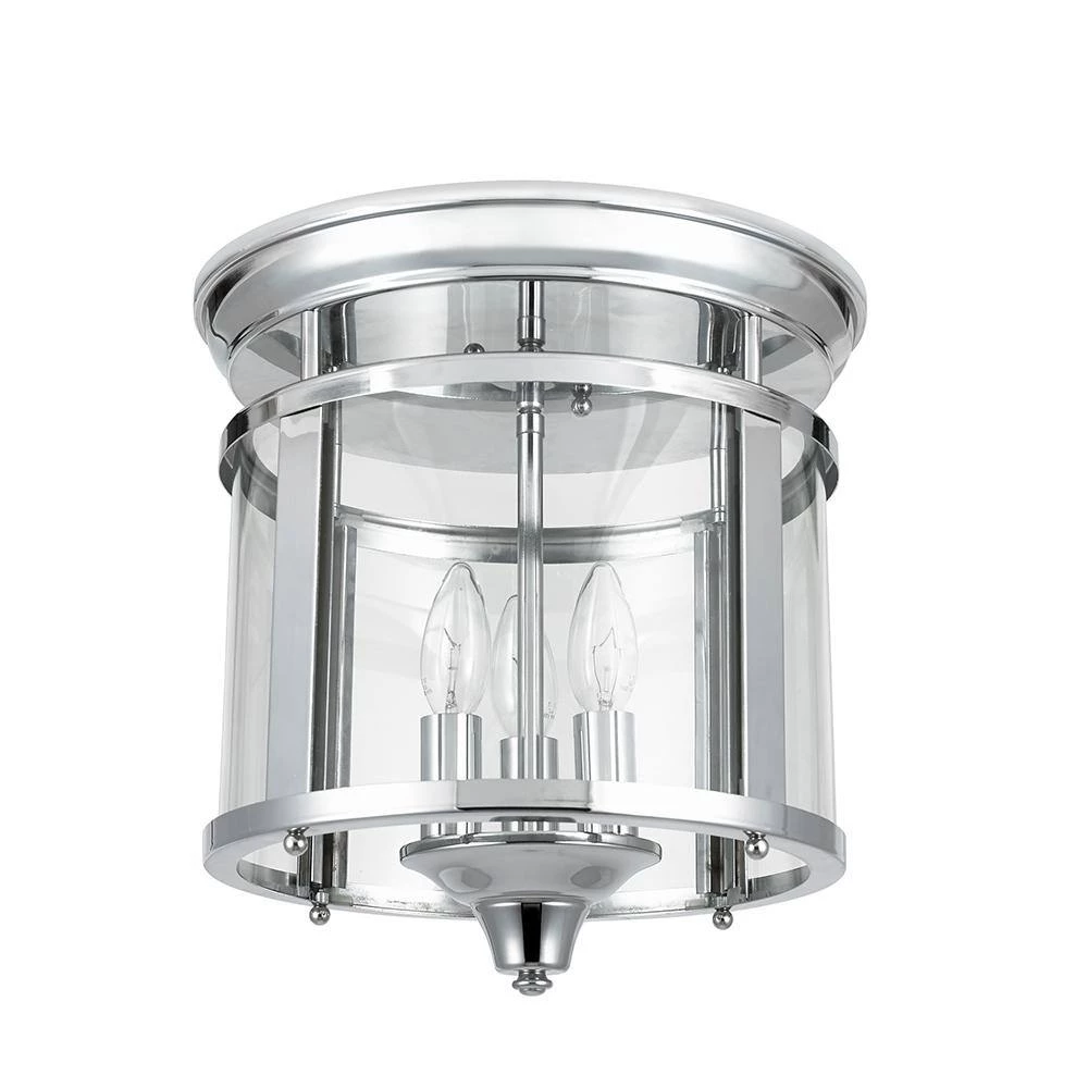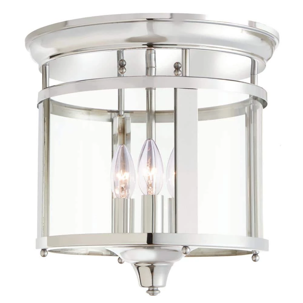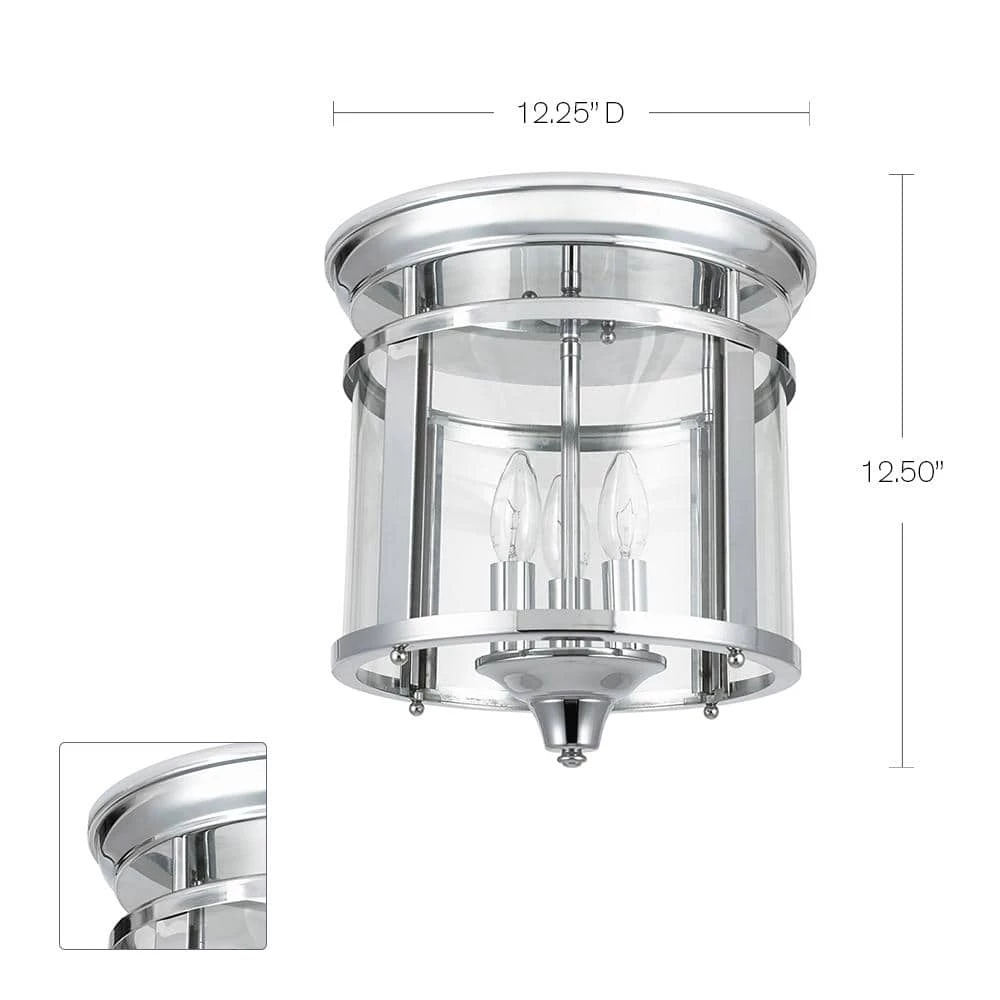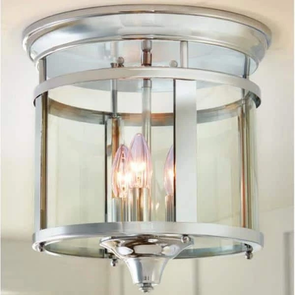 This elegant 3-light flush mount fixture in a polished chrome finish provides abundant light to your home and is a welcoming addition to your hall or foyer. The timeless style of the clear glass and inner candelabra chandelier will fill your home with generous amounts of illumination. The sleek design adds elegance and excitement to any room. Transform your dining room, kitchen, hallways and more. Updating the lighting in your home is the most effective way to accomplish a striking, yet simple, DIY remodel.